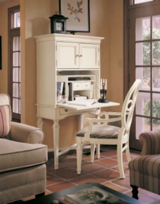 Portofino Desk by Stanley Furniture is adorable with its traditional cabinets and antiqued finish. I'd love to see this piece in a cottage or country home (loving the black finish as well).